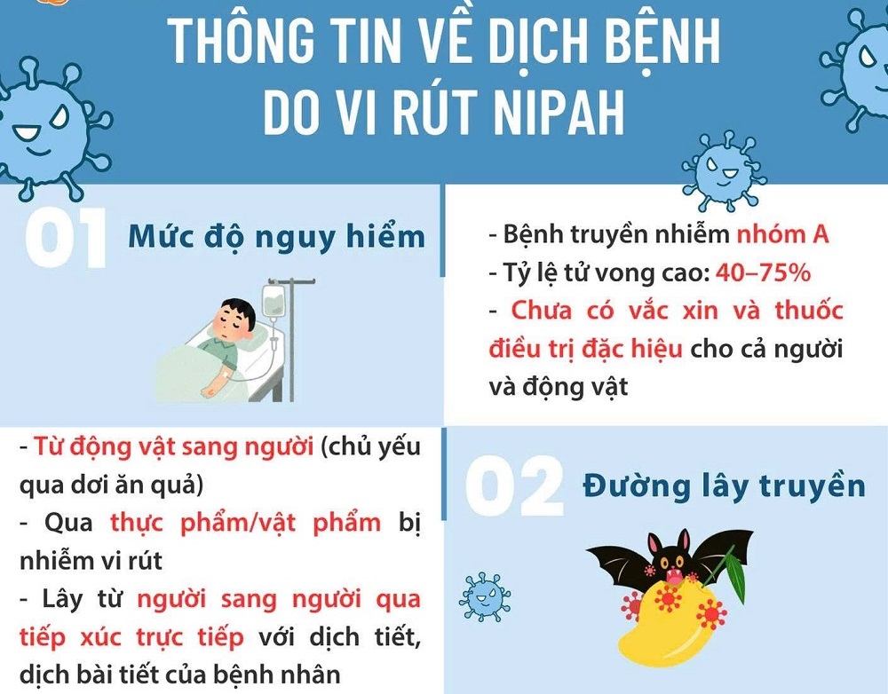 Tin Tức - Sự kiện của trường | 29/01/2026Virus Nipah – là một bệnh truyền nhiễm nhóm A lây từ động vật sang người hoặc tiếp xúc với vật phẩm, thực phẩm bị nhiễm virus. Theo ghi nhận tỷ lệ chết/ mắc ở các trường hợp nhập viện khoảng 40-75%.